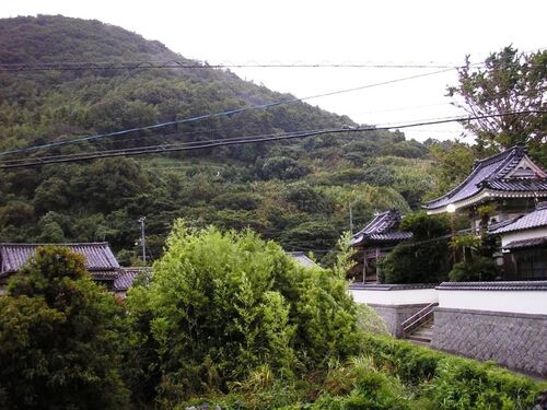 前頁からのつづき 石風呂の御堂から、向こうに見えるのが久賀民俗資料館です。