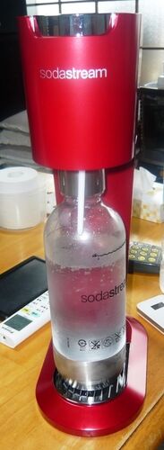 私もほしいと思っていたけど、どんなですか!(^^)? と聞かれました。なかなか優れものです。本体は約10,000円ですけど、セットで液化炭酸ガスボンベと専用耐圧ボトル1リットルが付いています。 本体にガスボンベと水を入れた専用ボトルをセットして本体の上部…